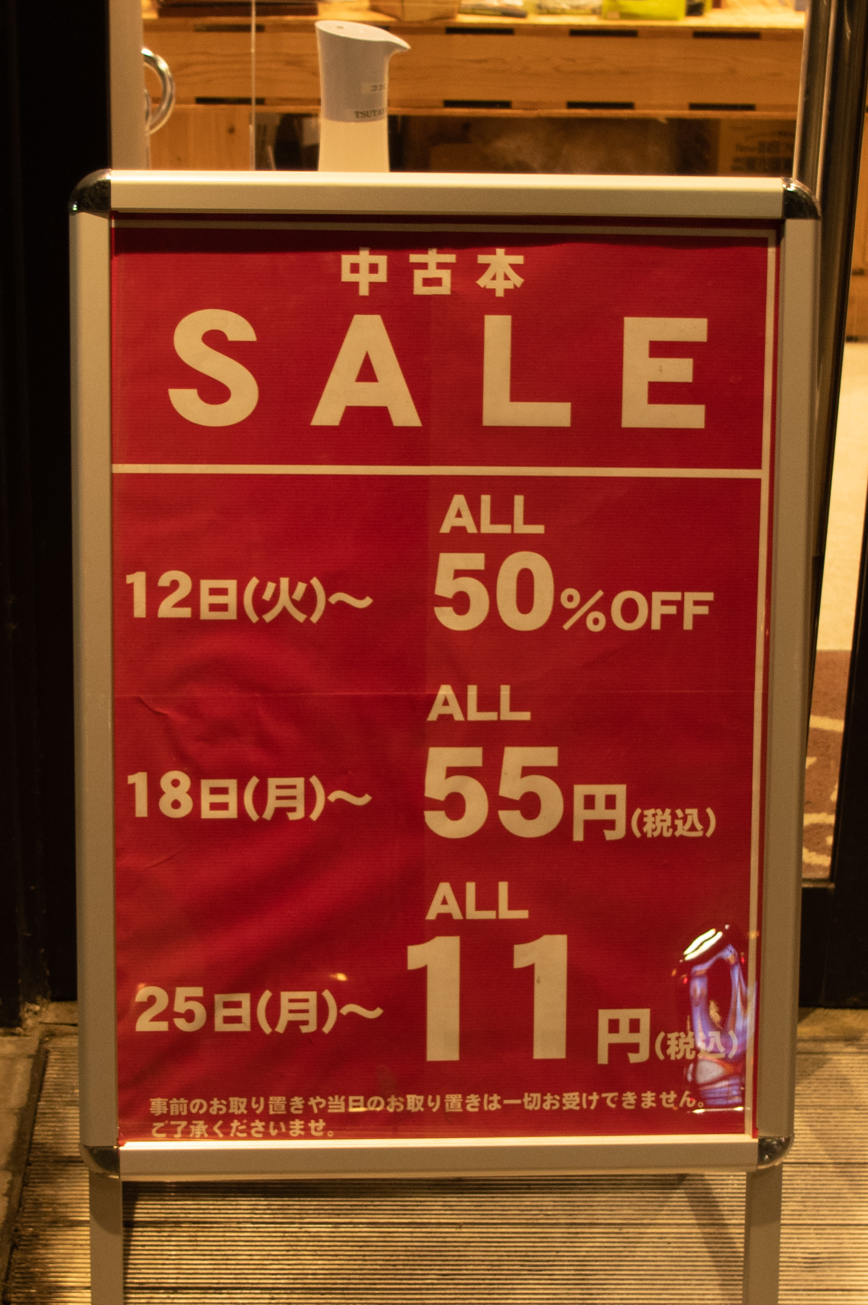 Tsutayaベルパルレ店本館の中古本がall55円になってる 25日以降はall11円 枚方つーしん